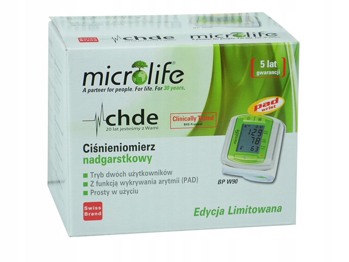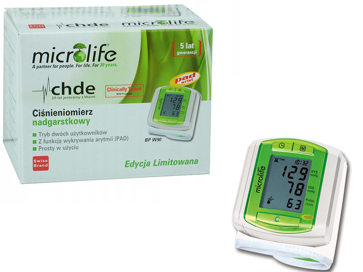 Automatyczny ciśnieniomierz nadgarstkowy Microlife BP W90 przeznaczony jest do pomiaru ciśnienia krwi i pulsu. Wykrywa arytmię serca oraz przypomina o wykonaniu pomiaru. Jest łatwy i szybki w obsłudze, doskonały w warunkach domowych.Cechy produktu: