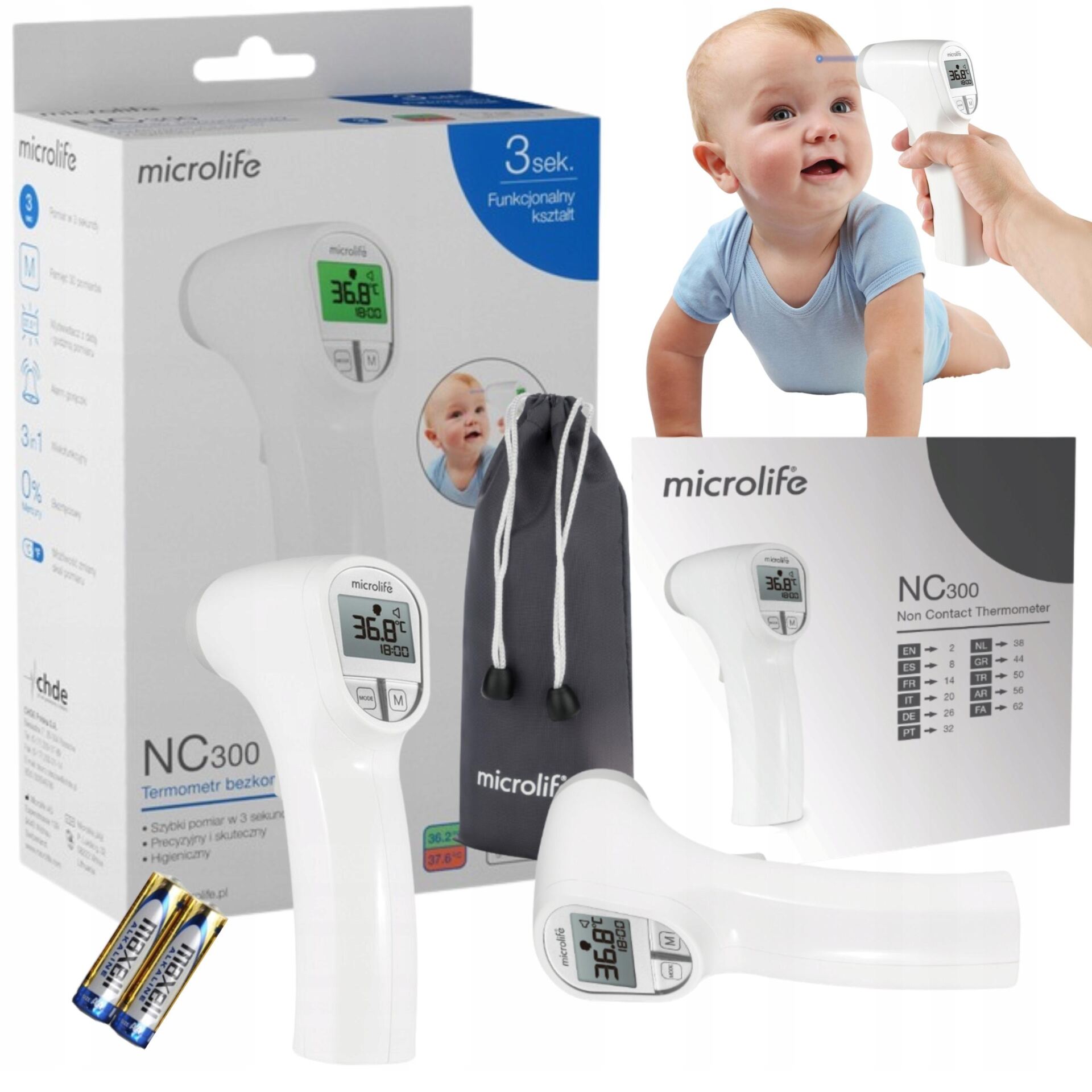 Bezkontaktowy termometr Microlife NC 300 oprócz swojej niezawodności, dokładności i łatwości obsługi umożliwia delikatny i nieinwazyjny pomiar temperatury ciała bez dotykania pacjenta. Nowy, funkcjonalny kształt urządzenia ułatwia codzienne użytkowanie. NC 300 cechuje sie wysoką precyzją i higieną użytkowania.