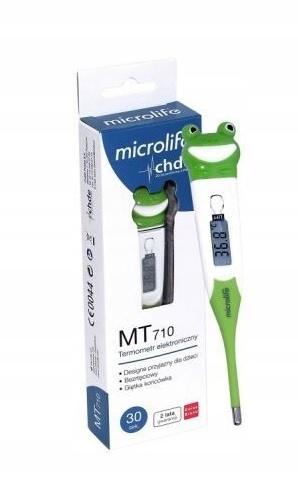 Termometr Microlife MT710 jest urządzeniem medycznym służącym do pomiaru temperatury ciała. Urządzenie jest wodoszczelne.