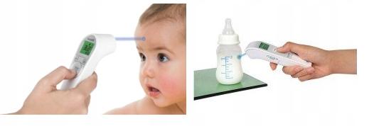 Wskazania: do pomiaru temperatury ludzkiego ciała na skroni a także do sprawdzania temperatury powierzchni następujących substancji: np. mleka w butelce, np. temperatury wody do kąpieli dla dziecka, temperatury otoczenia