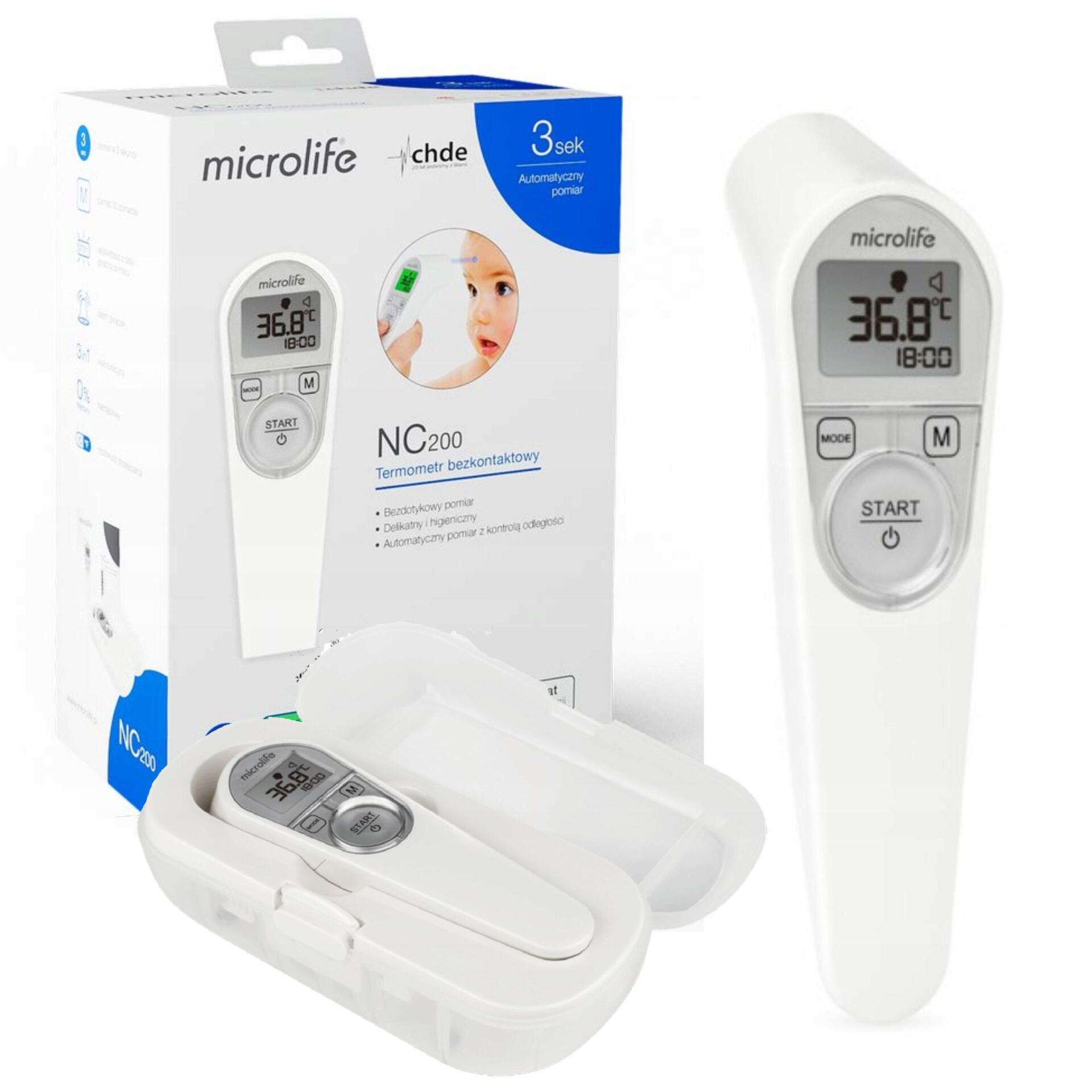 Termometr Bezdotykowy NC200 + ETUI GRATIS + BATERIE + KOMPRES ŻELOWY