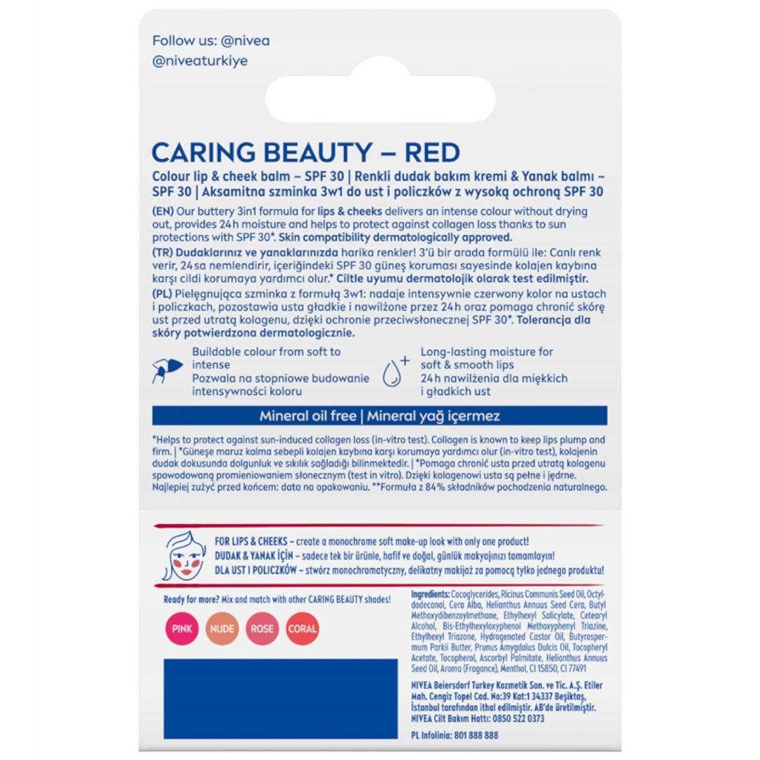 NIVEA Pielęgnująca pomadka do ust Caring Beauty 3w1 Red 4,8 g