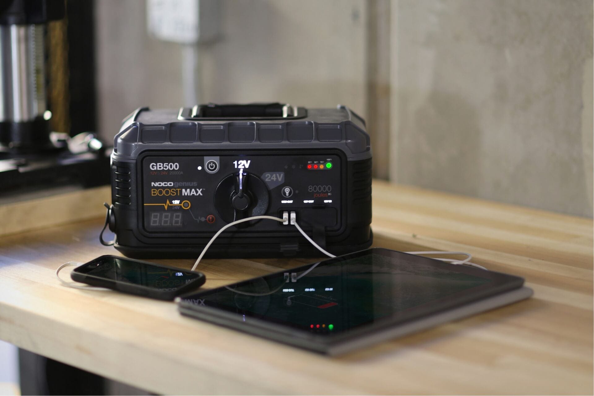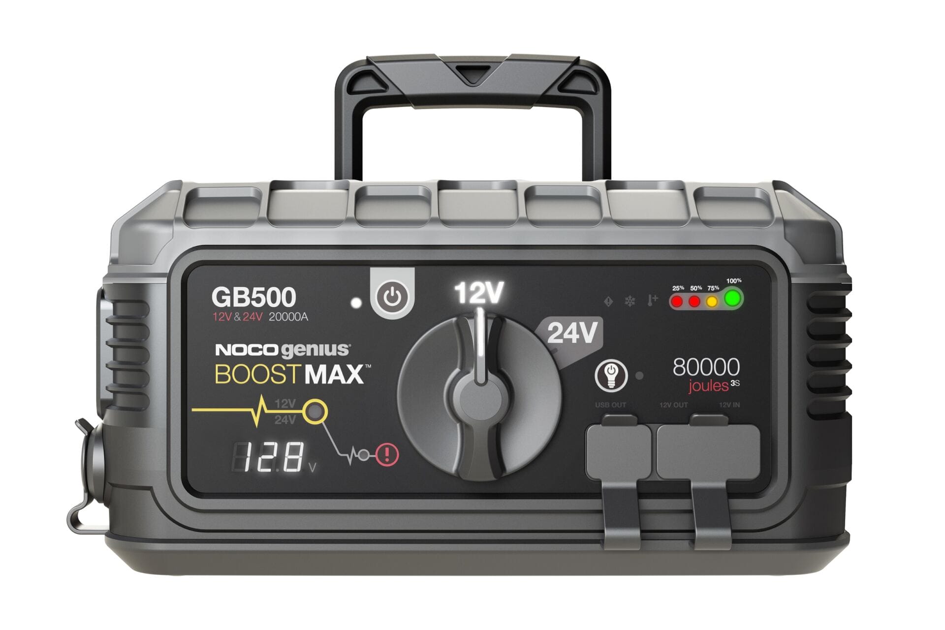 NOCO GB500 – urz膮dzenie rozruchowe 12V /24V, wyj膮tkowo bezpieczne kompaktowe, litowo-jonowe聽 o pr膮dzie rozruchowym 20 000A, 80 000 D偶uli3S (10000 A, 40 000 D偶uli3S przy 24 V).