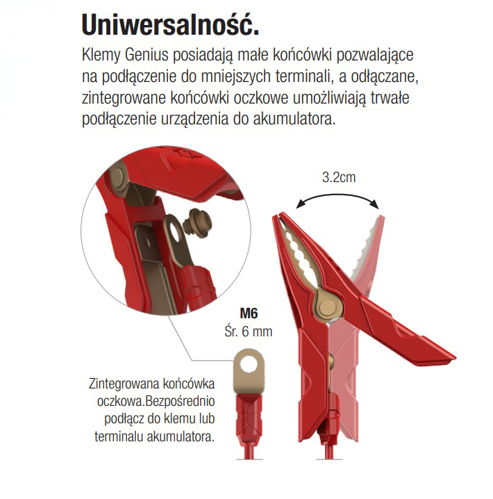 - Kompatybilny ze wszystkimi rodzajami pojazdów – ładuje i utrzymuje prąd w samochodach, motocyklach, kosiarkach, quadach, ciągnikach, ciężarówkach, SUV-ach, łodziach, klasycznych autach i innych.