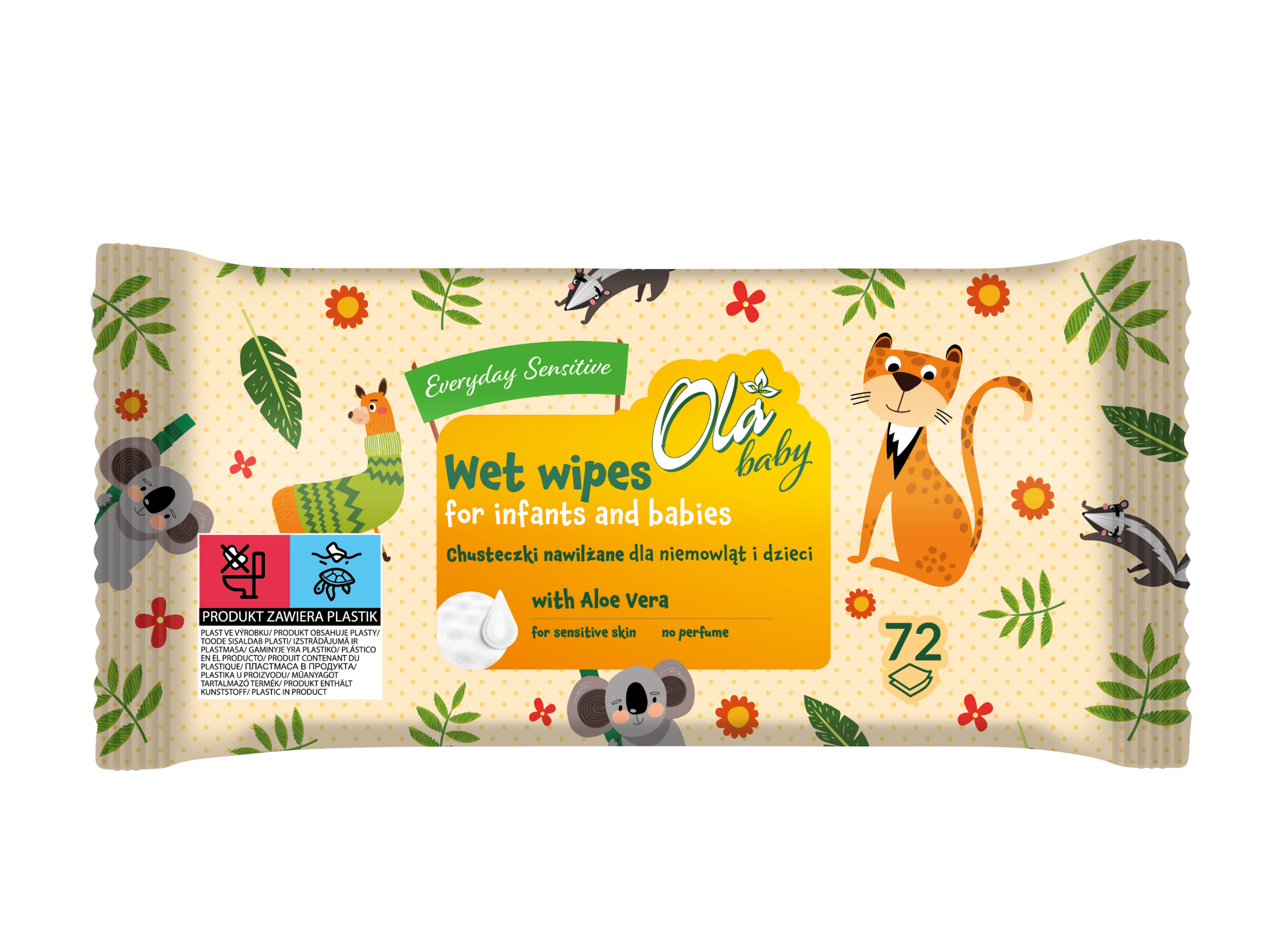 Nawilżane Chusteczki Dla Niemowląt i Dzieci Ola Baby Sensitive to produkt opracowany z myślą o wrażliwej skórze maluchów.