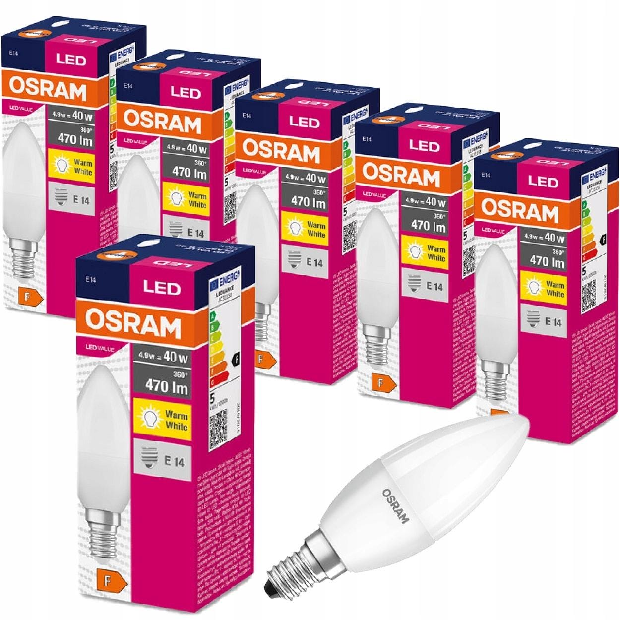 Jest to źródło światła z trzonkiem E14 o mocy 4,9W (odpowiednik klasycznej żarówki o mocy 40W). Żarówka emituje ciepłą barwę światła 2700K o strumieniu świetlnym 470lm.