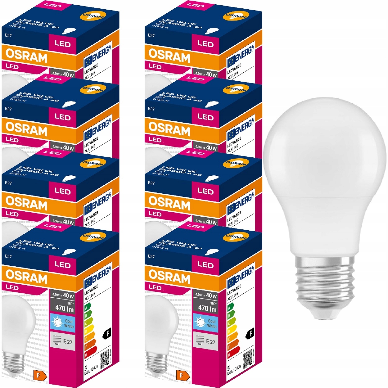 OSRAM/LEDVANCE Żarówka LED E27 4,9W = 40W 4000K x 8