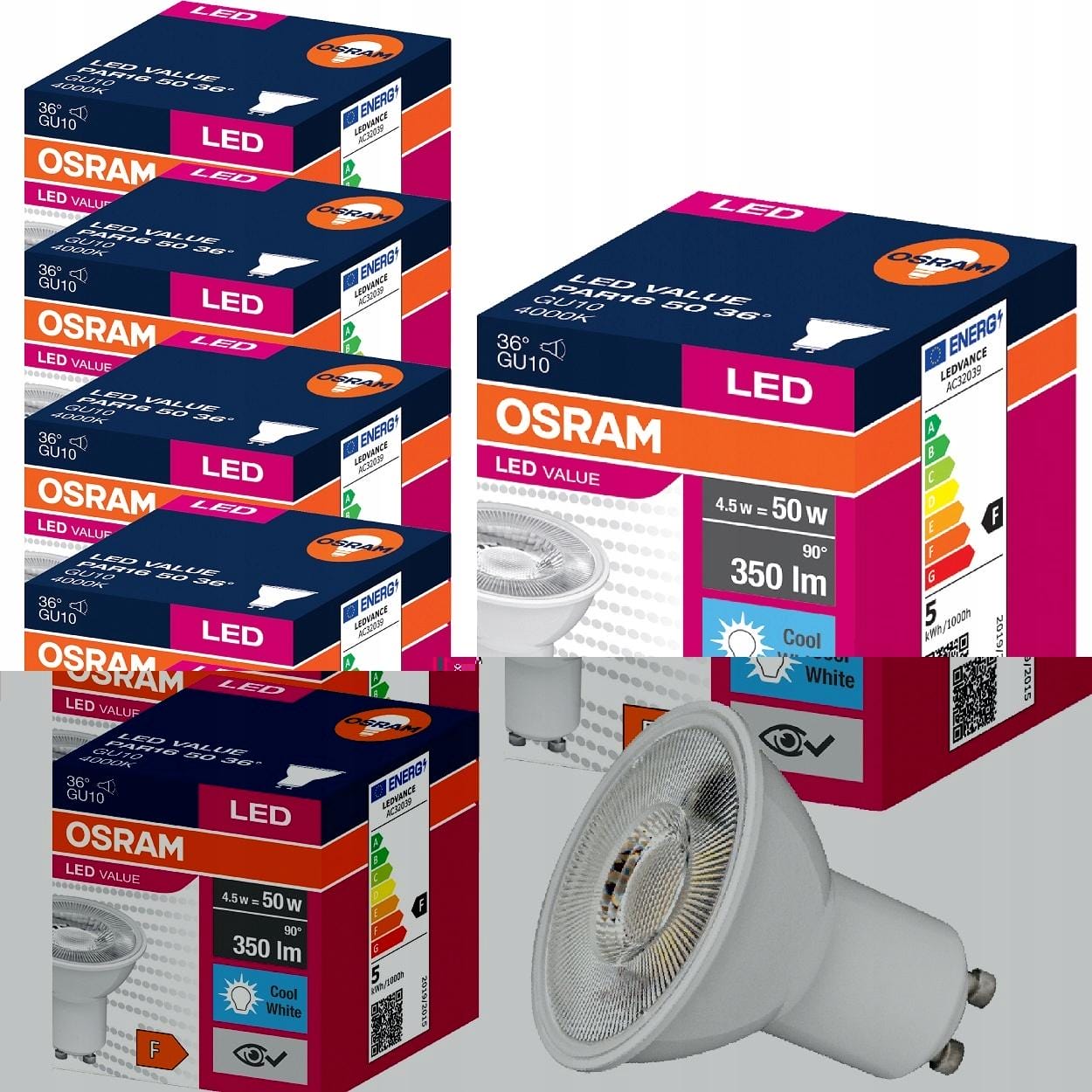 Żarówka LED Halogen 4,5W 50W GU10 36s Osram Value – Neutralna Barwa Światła x 6