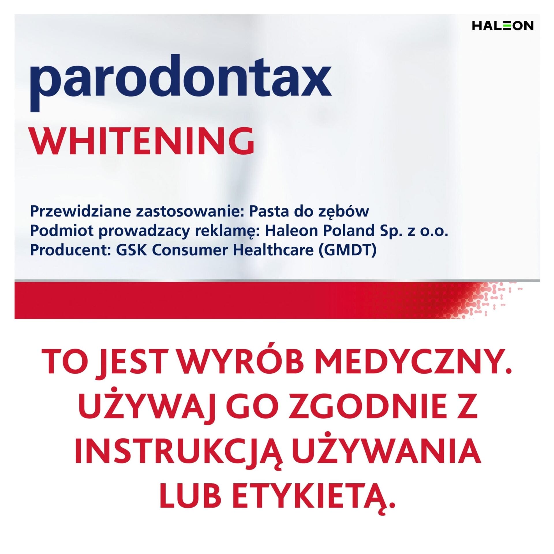 To natomiast może powodować nawet zmniejszenie stabilności i utratę zębów. Parodontax Whitening to pasta stworzona z myślą o właściwiej pielęgnacji jamy ustnej, której formuła jest 4x bardziej skuteczna w usuwaniu płytki bakteryjnej będącej główną przyczyną krwawienia dziąseł*. Dzięki zawartości starannie dobranych składników pasta Parodontax Whitening zapobiega również występowaniu krwawienia w przyszłości, pozwalając zachować zdrowe dziąsła.