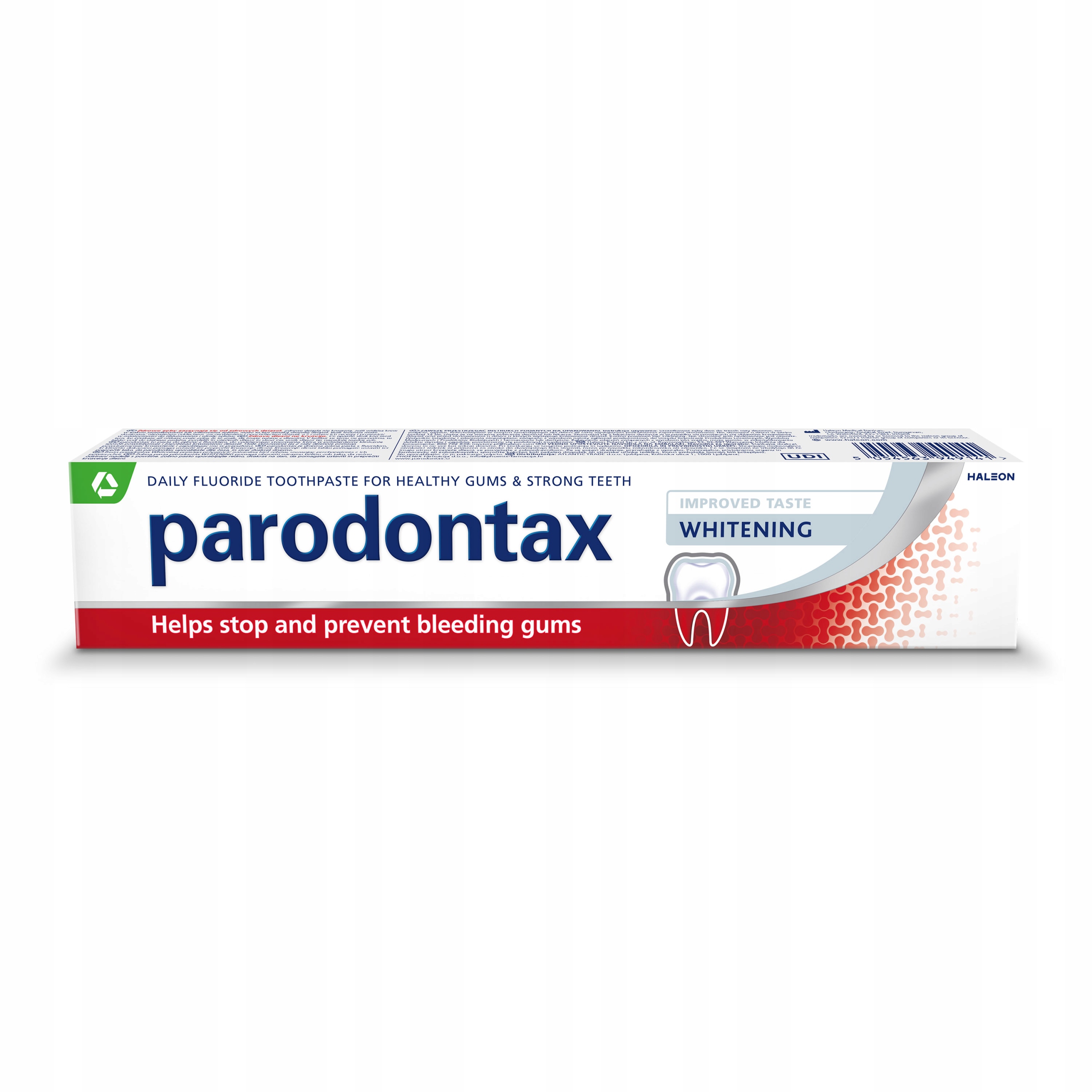 Dzięki zawartości starannie dobranych składników pasta Parodontax Whitening zapobiega również występowaniu krwawienia w przyszłości, pozwalając zachować zdrowe dziąsła.