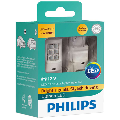 Lampy sygnalizacyjne LED Philips庐聽WY21W Ultinon LED Amber do zastosowania jako 艣wiat艂a kierunkowskazu. Bardzo 艂atwe w monta偶u, napi臋cie: 12 V, trwa艂o艣膰 do 8 lat.