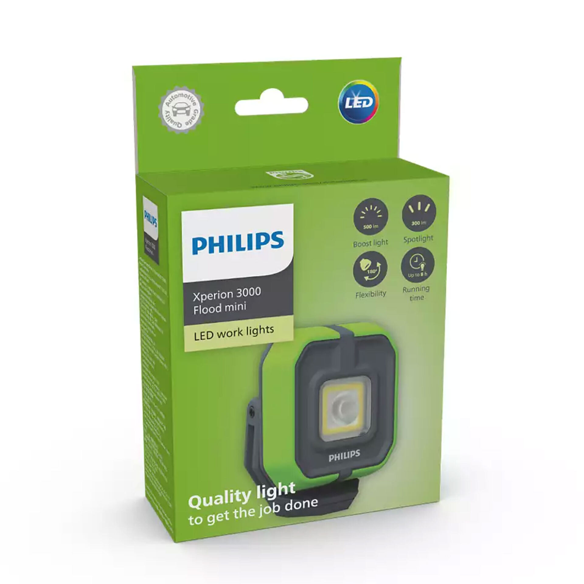 Kompaktowy i wszechstronny projektor LED Philips Xperion 3000 Flood Mini zapewnia jasne, białe światło potrzebne do codziennego użytku. Po naładowaniu akumulatora można cieszyć się nawet ośmioma godzinami ciągłej pracy.