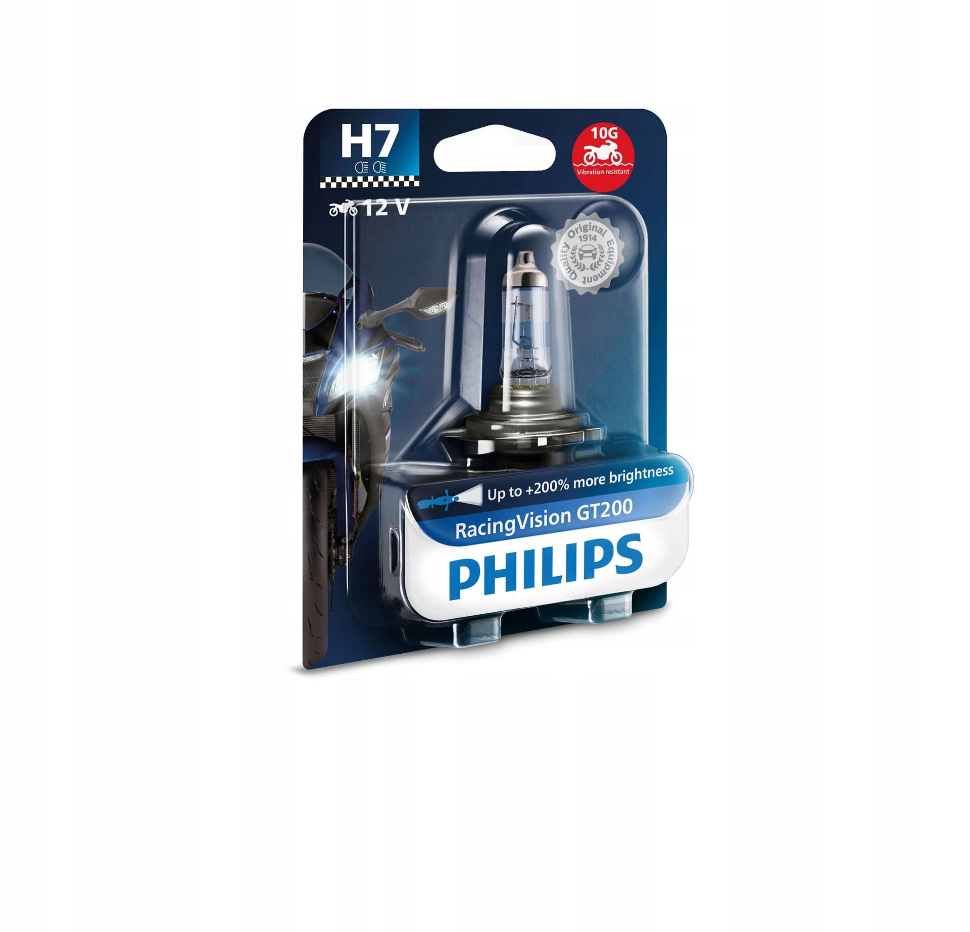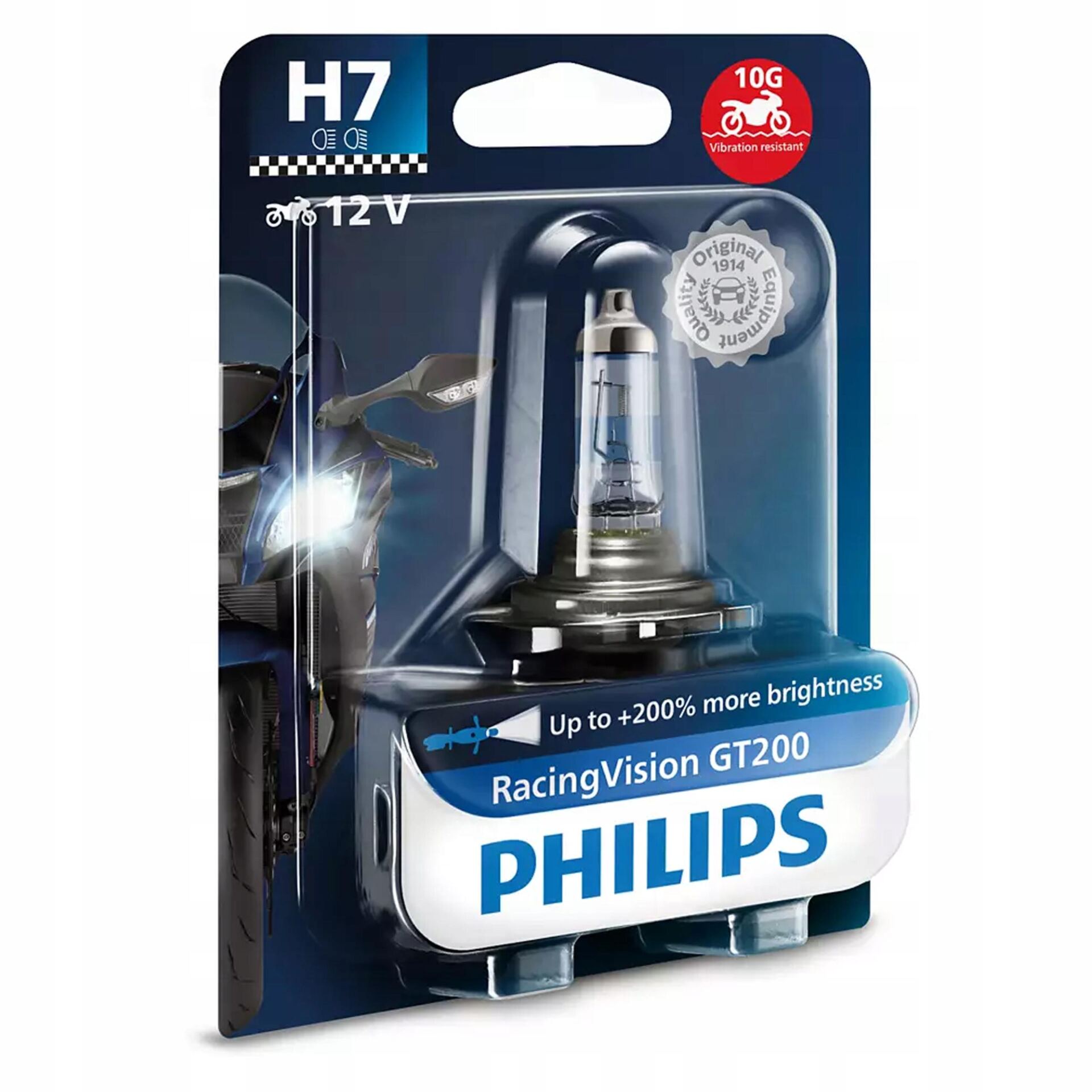 Zaawansowane technologicznie o艣wietlenie Philips znane jest w bran偶y motoryzacyjnej od ponad 100 lat. Oryginalne wyposa偶enie Philips jest projektowane i opracowywane w oparciu o 艣cis艂e procedury kontroli jako艣ci (w tym stosowne normy ISO), co zapewnia utrzymanie wysokich standard贸w produkcji. 呕ar贸wki Philips RacingVision GT200 moto s膮 zgodne z modelami motocykli wiod膮cych marek.