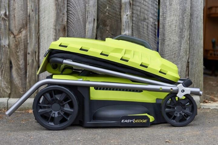 - Składane i zdejmowane uchwyty oraz składany kosz na trawę ułatwiają przechowywanie