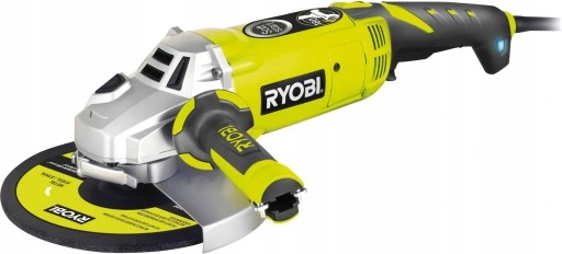 Sieciowa szlifierka kątowa EAG2000-G Ryobi wyposażona jest w niebieską diodę informującą o gotowości urządzenia do pracy. Duża kątówka na tarcze 230mm dysponuje mocnym silnikiem 2000W przystosowanym do szlifowania i cięcia metali oraz do cięcia materiałów budowlanych tarczami diamentowymi. Obrotowa rękojeść główna i dwie możliwe lokalizacje rękojeści pomocniczej zapewniają ergonomiczną pozycję do cięcia osobom leworęcznym i praworęcznym. Ich miękka powłoka antypoślizgowa zwiększa komfort i kontrolę nad maszyną, a także niweluje odczuwanie wibracji. Osłona przestawiana beznarzędziowo poprawia bezpieczeństwo i przyśpiesza przezbrojenie maszyny do nowego zadania. Użytkownik chroniony jest również włącznikiem czuwakowym, który niezwłocznie odłącza zasilanie po puszczeniu rękojeści głównej. Jego specjalna blokada uniemożliwia przypadkowe uruchomienie silnika.