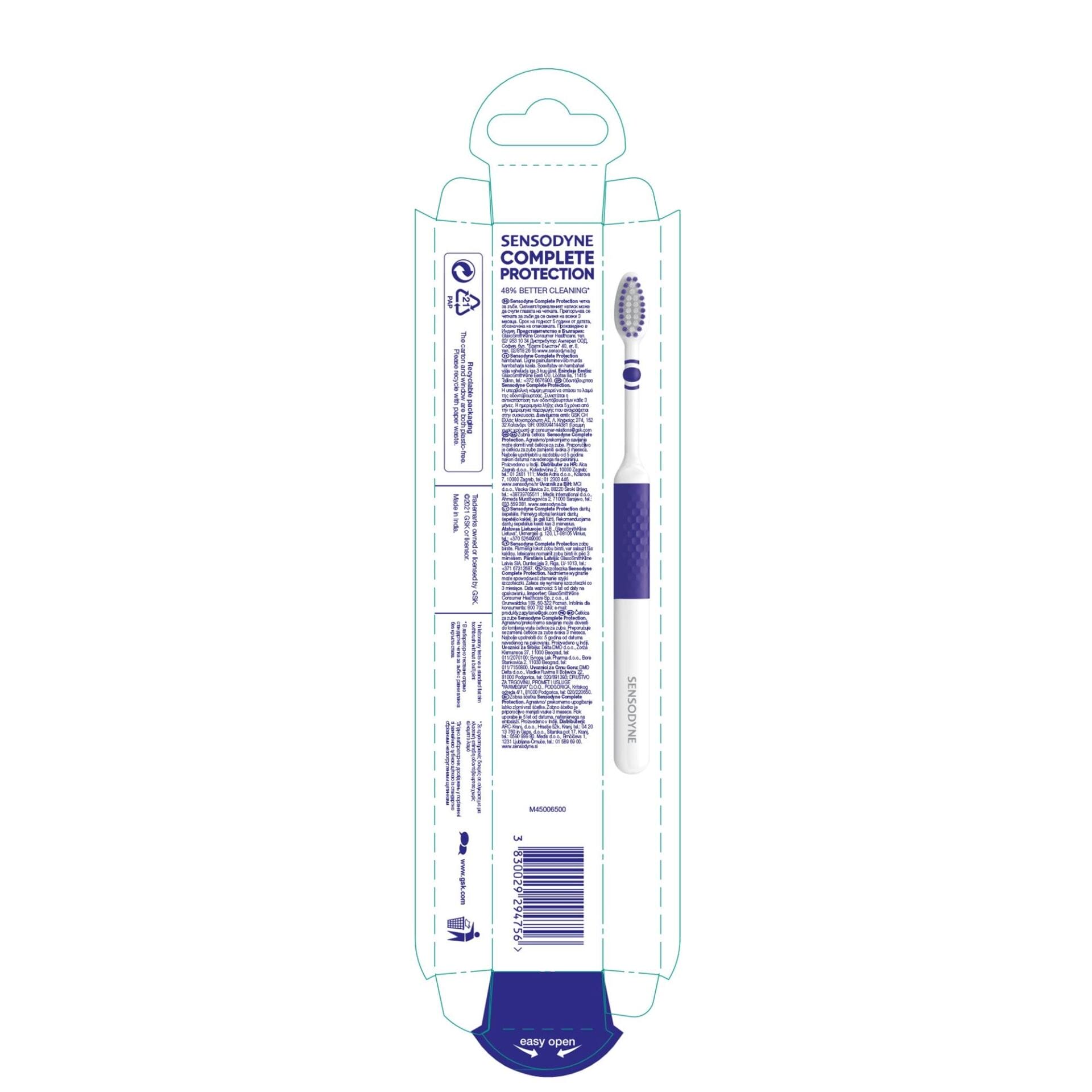 Zewnętrzne włókna zostały odpowiednio zwężone, co w połączeniu z miękką, elastyczną główką szczoteczki chroni przed nadmiernym naciskiem podczas szczotkowania. Cienkie włosie dociera także do trudno dostępnych miejsc, pozwalając odpowiednio czyścić również przestrzenie międzyzębowe. Sensodyne Complete Protection to szczoteczka zaprojektowania specjalnie dla wrażliwych zębów i dziąseł, dzięki której codzienna pielęgnacja jamy ustnej stanie się łatwiejsza!