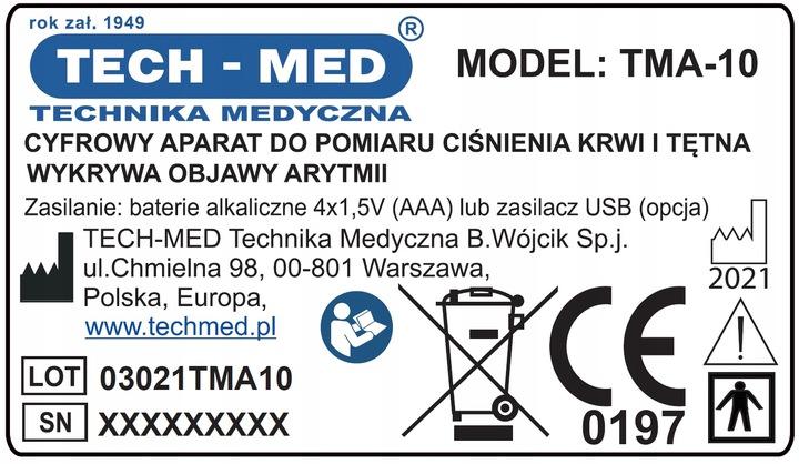 TECH-MED Ciśnieniomierz elektroniczny TMA-10 + ZASILACZ + BATERIE