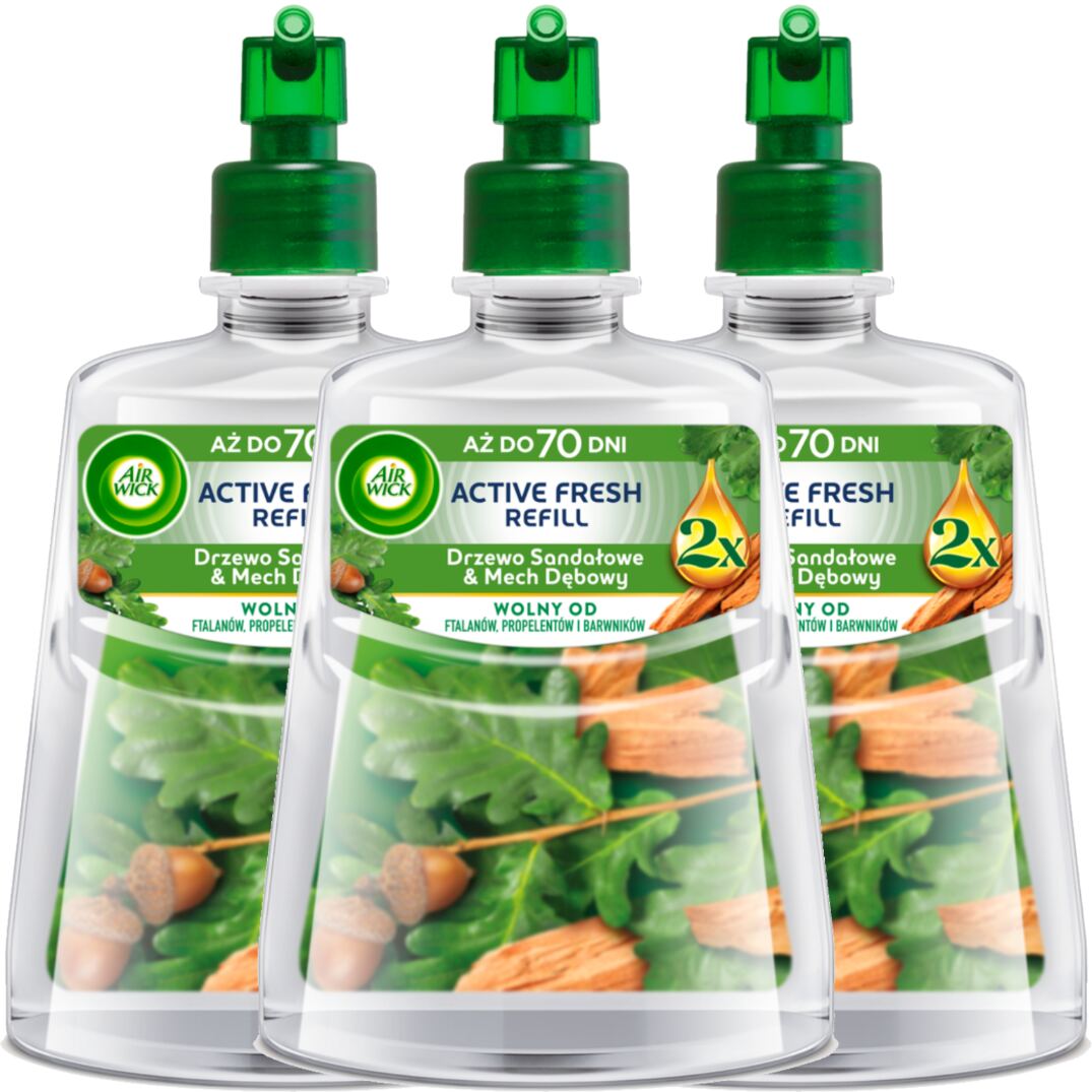 ZESTAW AIR WICK ACTIVE FRESH DRZEWO SANDAŁOWE & MECH DĘBOWY WKŁAD 228 ML x3 Z PODWOJONĄ ZAWARTOŚCIĄ OLEJKÓW ETERYCZNYCH
