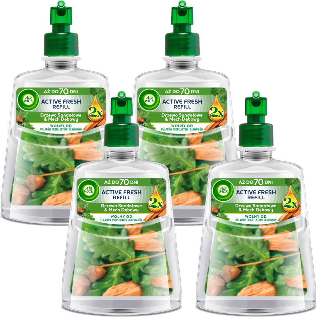 ZESTAW AIR WICK ACTIVE FRESH DRZEWO SANDAŁOWE & MECH DĘBOWY WKŁAD 228 ML x4 Z PODWOJONĄ ZAWARTOŚCIĄ OLEJKÓW ETERYCZNYCH